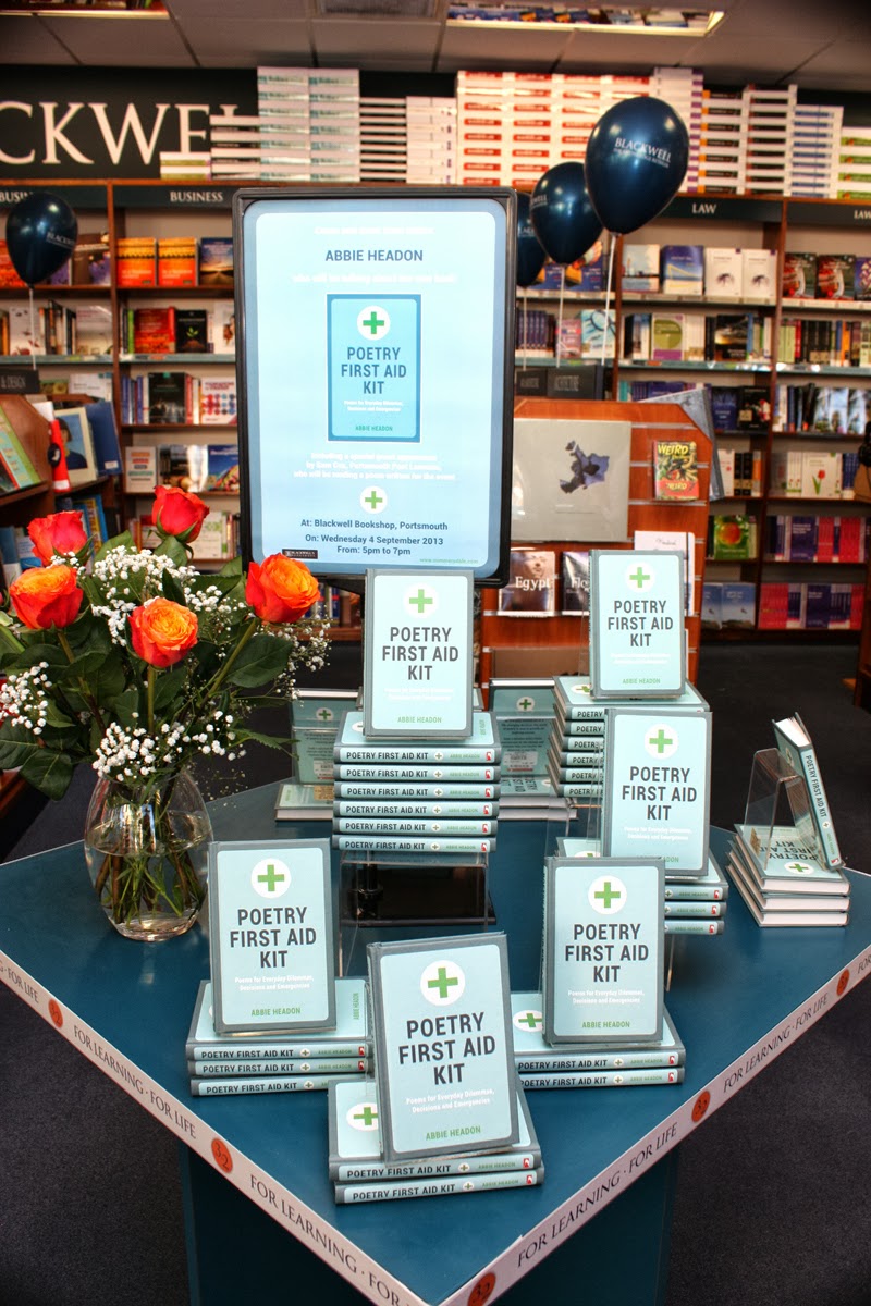 Those who know the staff at LSI/IH Portsmouth will remember Abbie Headon from a couple of years ago, who was such a popular teacher at LSI/IH Portsmouth. We have all kept in touch, in part, due to the fact that Abbie’s husband Jeremy continues to work at LSI/IH Portsmouth. Abbie left to return to her first love – Publishing. For the last year or so she has been writing a book, reflecting her love of poetry and at the beginning of September it was published. To celebrate the occasion Blackwells the book shop across the road to LSI/IH Portsmouth held a book launch for her wonderful book ‘Poetry First Aid Kit‘. All who attended (and there were many teachers in attendance) had a wonderful evening, with lovely food and drink supplied, lots of friends and readings from her book. There was even a celebrity among the audience; Portsmouth’s very own Poet Laureate Sam Cox, who wrote and performed a poem specially.